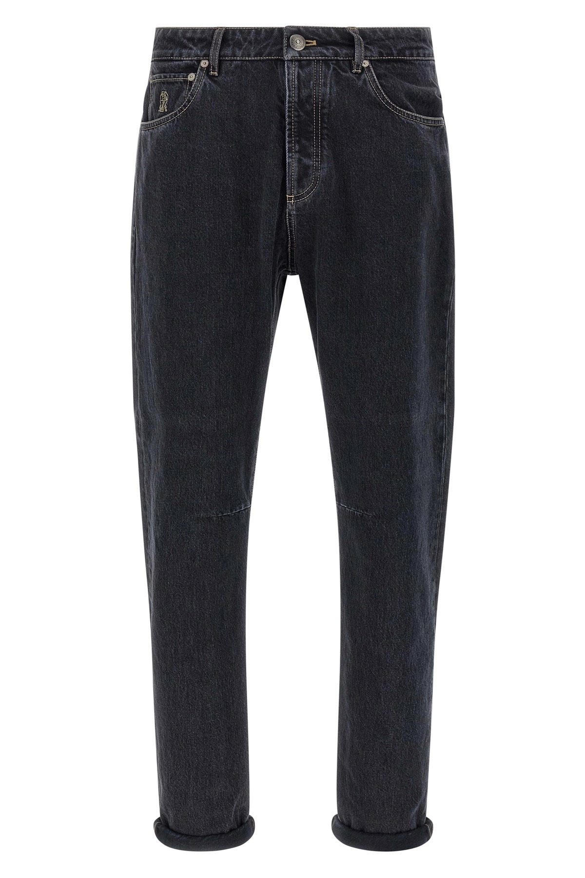 cod. M235PX1290C9016 Cotton denim jeans with straight leg, button closure, pockets, front logo embroidery, back leather logo tag with logo, contrast stitching, 5 pockets. Color: Gray Size & Fit: True to size fit Composition: 100% cotton Made in: Italy