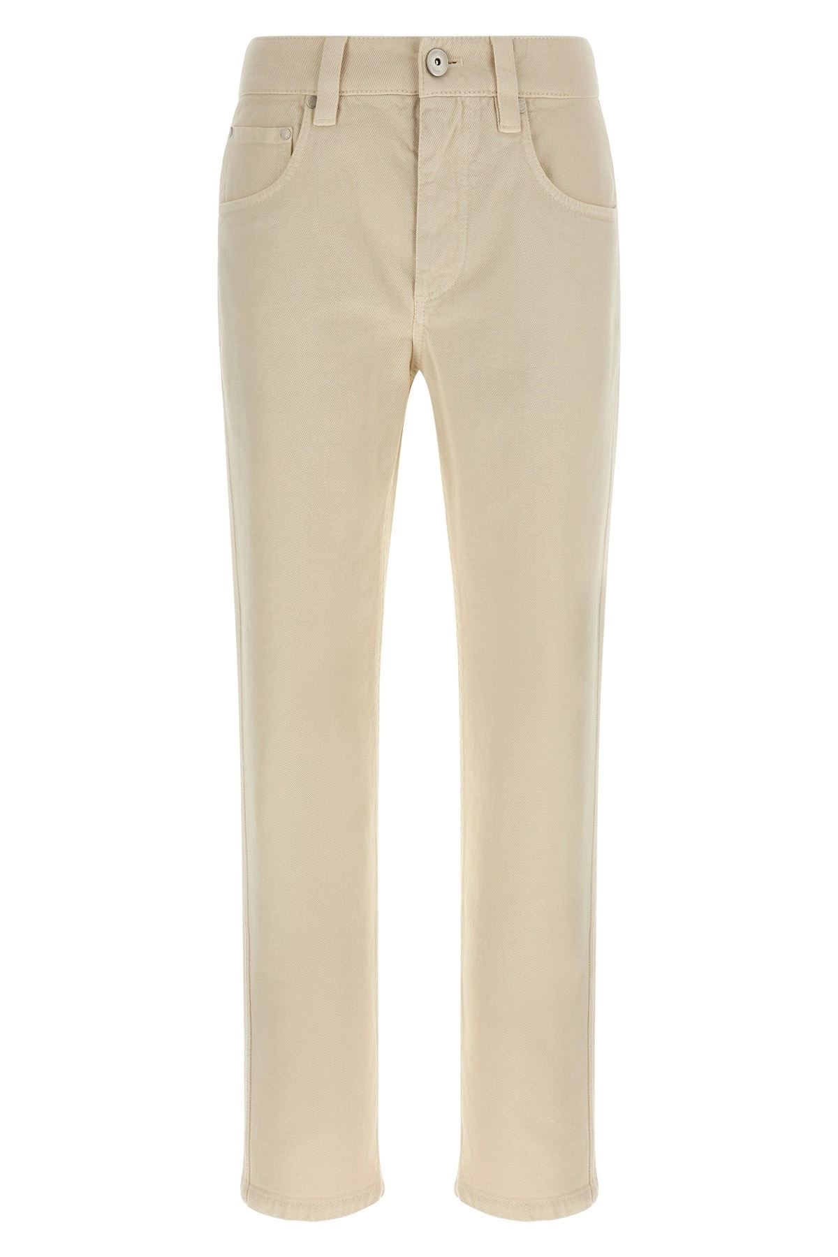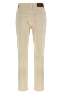 cod. MPH81P5847C8739 Five-pocket denim trousers, straight model, with jewel detail on the back, front button and zip closure. Color: White Size & Fit: True to size fit Composition: 100% cotton Made in: Italy