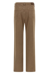 cod. M0H81P5568C1799 Garment-dyed denim trousers, 5-pocket model, medium waist, straight leg with front stretched pleat, zip and button closure. Color: Beige Size & Fit: True to size fit Composition: 100% cotton Made in: Italy
