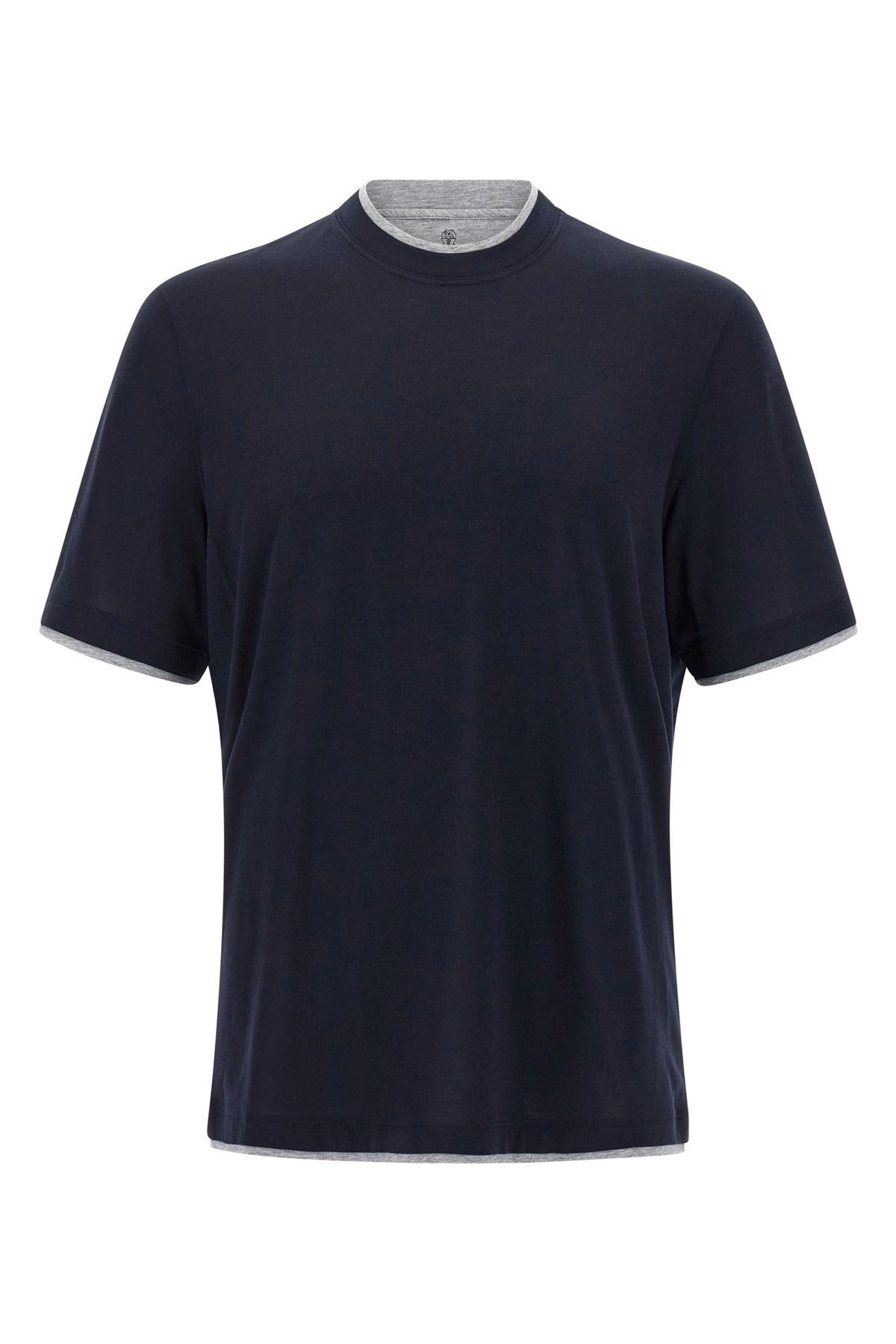 Silk and cotton lightweight jersey crew neck T-shirt with faux-layering