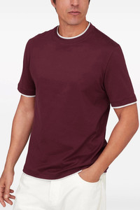 cod. M0B137427COA16 Cotton, crewneck t-shirt with short sleeves and a double layer effect. Color: Bordeaux Size & Fit: true to size fit Composition: 100% cotton Made in: Italy