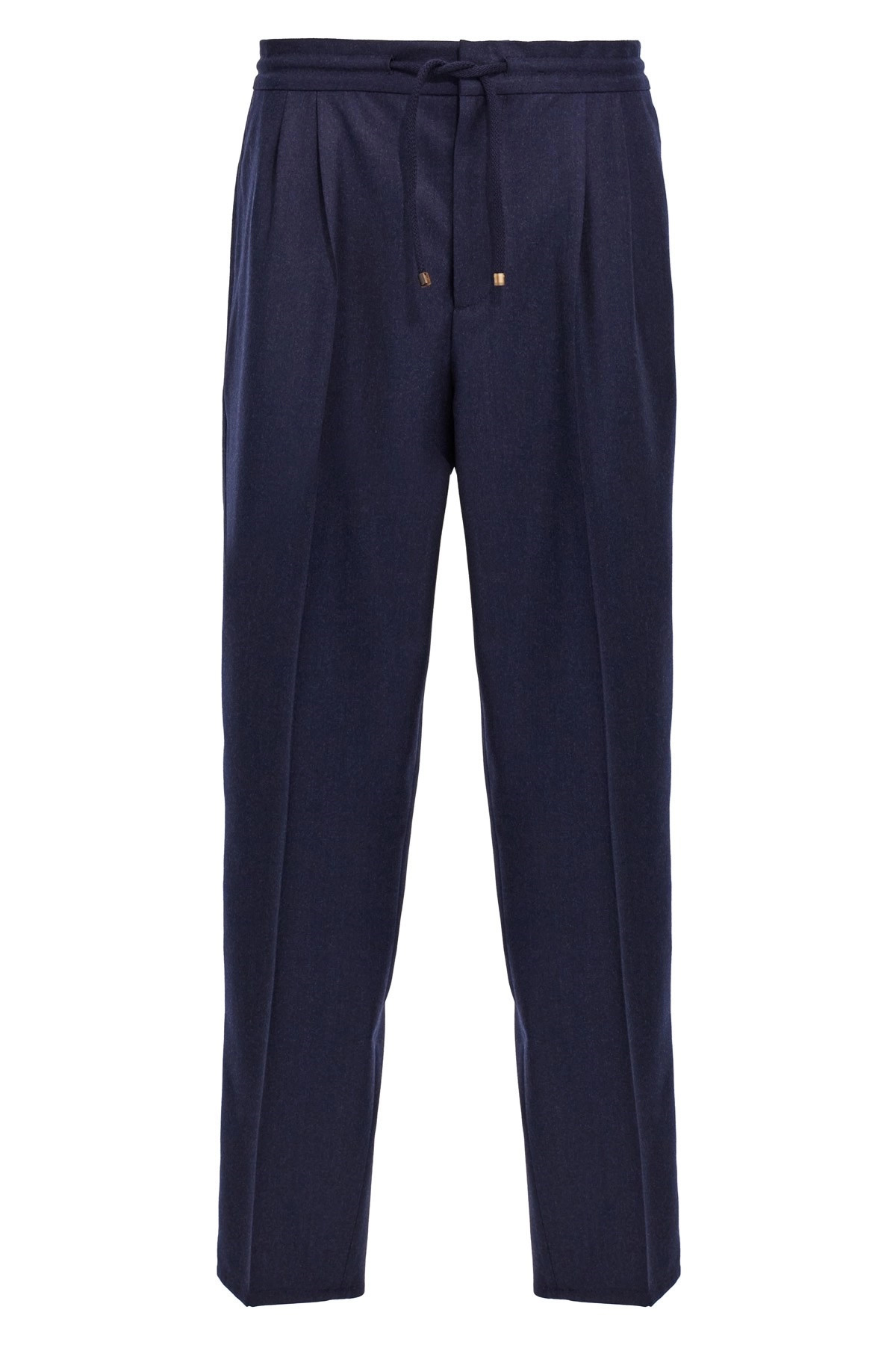 Virgin wool flannel leisure fit trousers with drawstring and double pleats