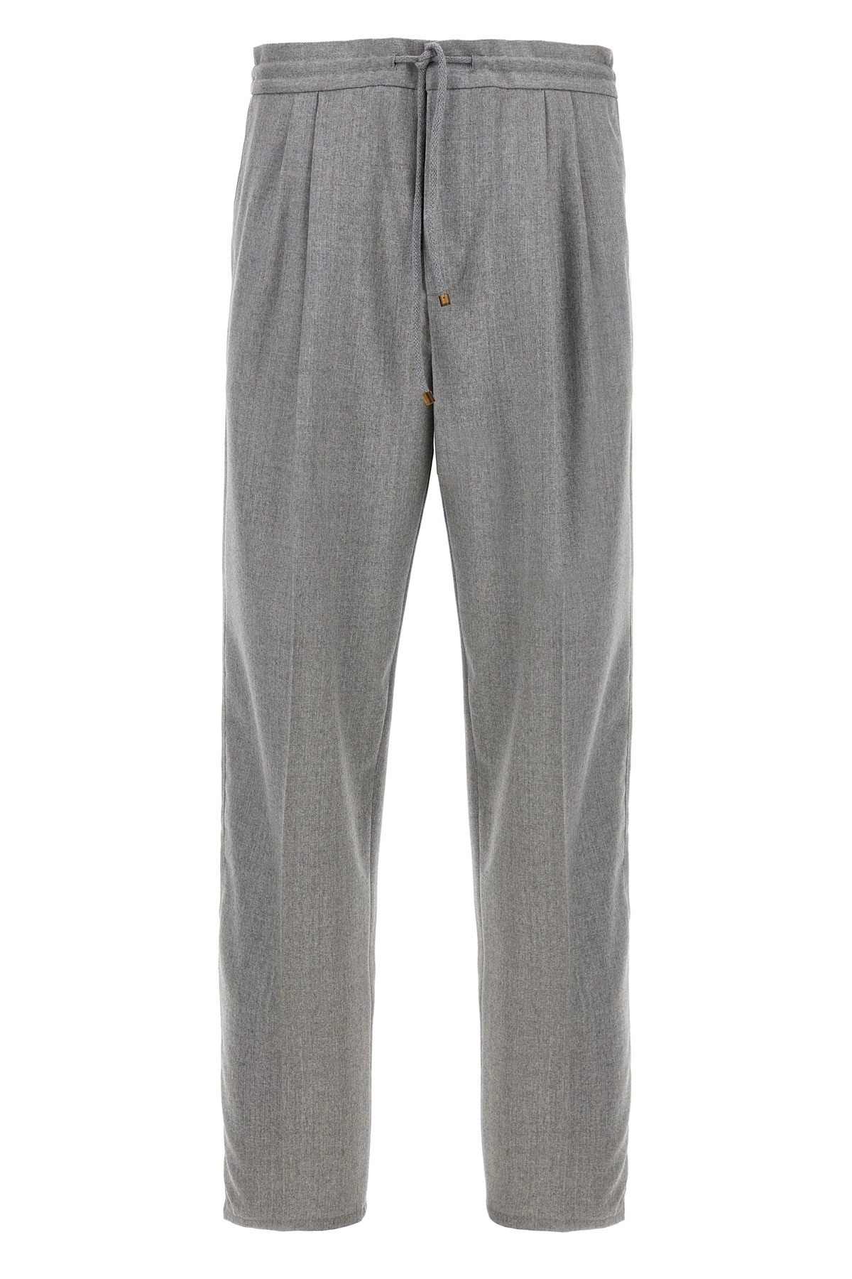 Virgin wool flannel leisure fit trousers with drawstring and double pleats