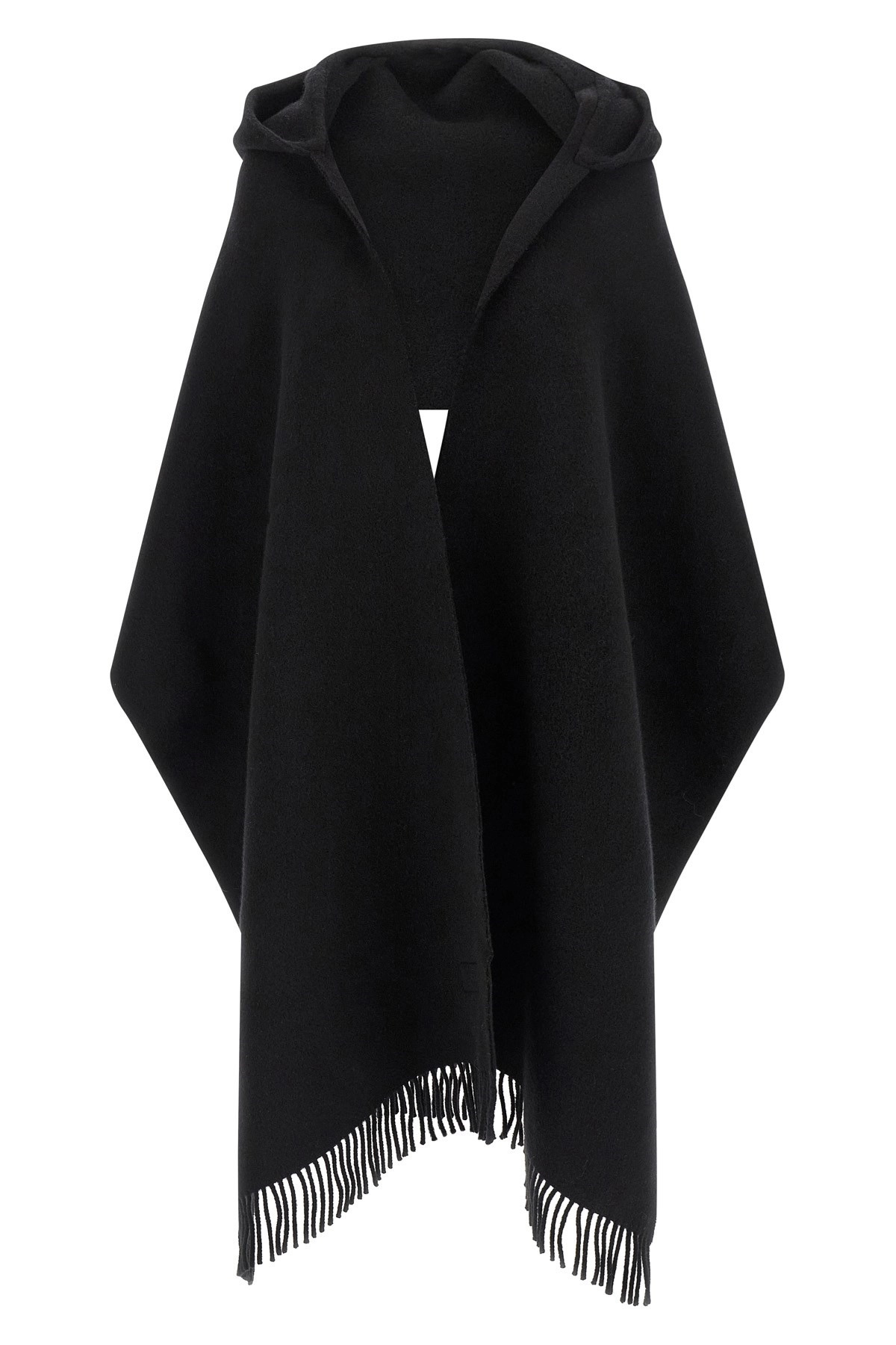 cod. MSCDAGW83C101 Shaved wool and cashmere knit scarf with hood and fringed hem. Color: Black Size & Fit: 50 x 240 cm Composition: 59% wool 41% cachemire Made in: Italy