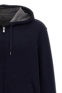 cod. MM8319069GC1265 Cotton blend hoodie with zip closure, pockets, long cuffed sleeves. Color: Blue Size & Fit: true to size fit Composition: 64% cotton 26% polyamide 6% cashmere 4% silk Made in: Italy