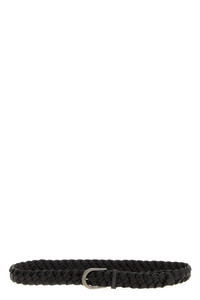 cod. M0TVPC33XCN062 Braided nappa leather belt, metal buckle with Monile detail. Color: Brown Size & Fit: H 3.5 cm Composition: 100% lamb leather (Ovis aries) Made in: Italy