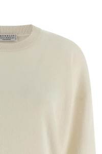 cod. M12211900C2723 Cashmere sweater, crew neck, long sleeves with dropped shoulders and worked cuffs. Color: White Size & Fit: true to size fit Composition: 100% cashmere Made in: Italy