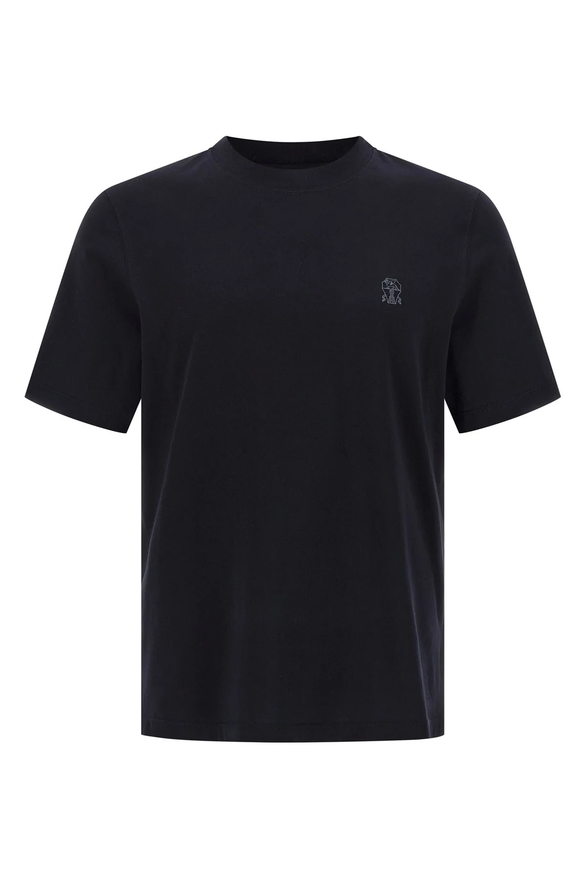 cod. M0B138440CD361 Cotton jersey T-shirt with front logo print, crew neck, short sleeves, side splits. Color: Blue Size & Fit: true to size fit Composition: 100% cotton Made in: Italy