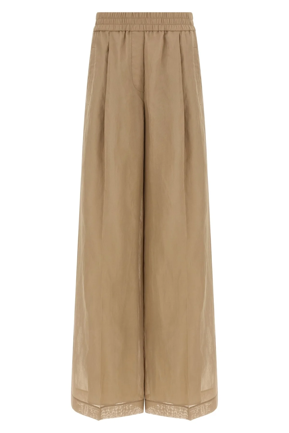 cod. M0F91P8742C8690 'Loose Track' cotton organza pants, pince, wide leg, stretched pleat, elastic waistband, pockets, full lining in crepe and silk blend. Color: Beige Size & Fit: true to size fit Composition: 100% cotton Made in: Italy