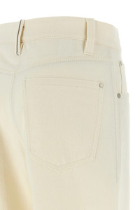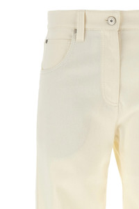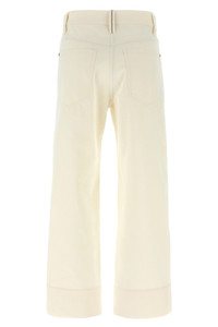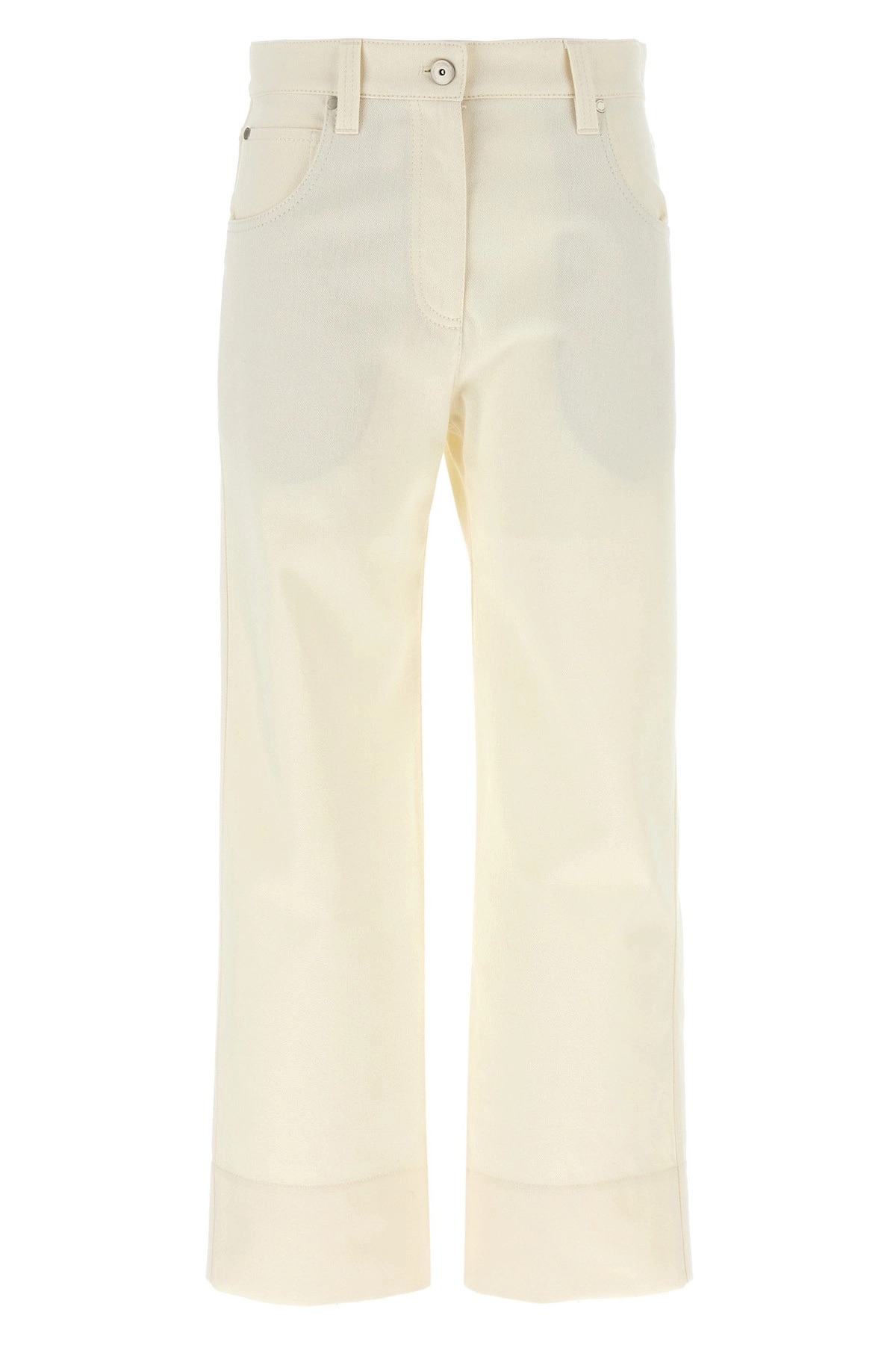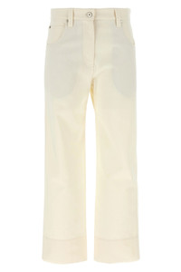 cod. MP142P9046C1101 Cotton and wool blend pants, crop model with wide leg, back Monile detail, zip and front button closure, five pockets. Color: Beige Size & Fit: true to size fit Composition: 72% cotton 15% wool 13% polyester Made in: Italy