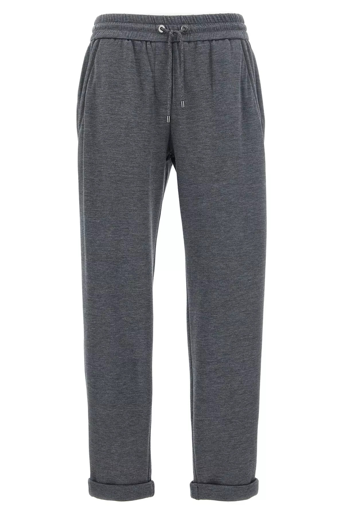 cod. MP828SB899C572 Joggers in cotton blend, elastic and drawstring at the waist, pockets with 'Monile' detail, turned-up hem. Color: Gray Size & Fit: true to size fit Composition: 67% cotton 31% silk 2% polyamide