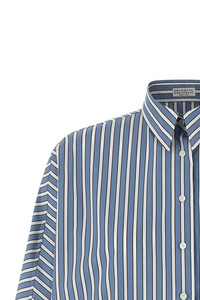 Cotton shadow stripe poplin shirt with monili