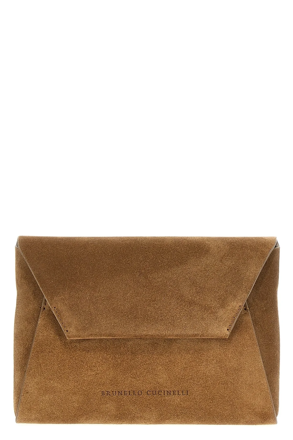 cod. MWDLD2722C7495 Suede clutch bag, front embossed logo, magnetic flap closure, removable Monile shoulder strap. Color: Brown Size & Fit: W 19.5 x H 14.5 x D 2.5 cm Composition: 100% calfskin leather (Bos Taurus) Made in: Italy