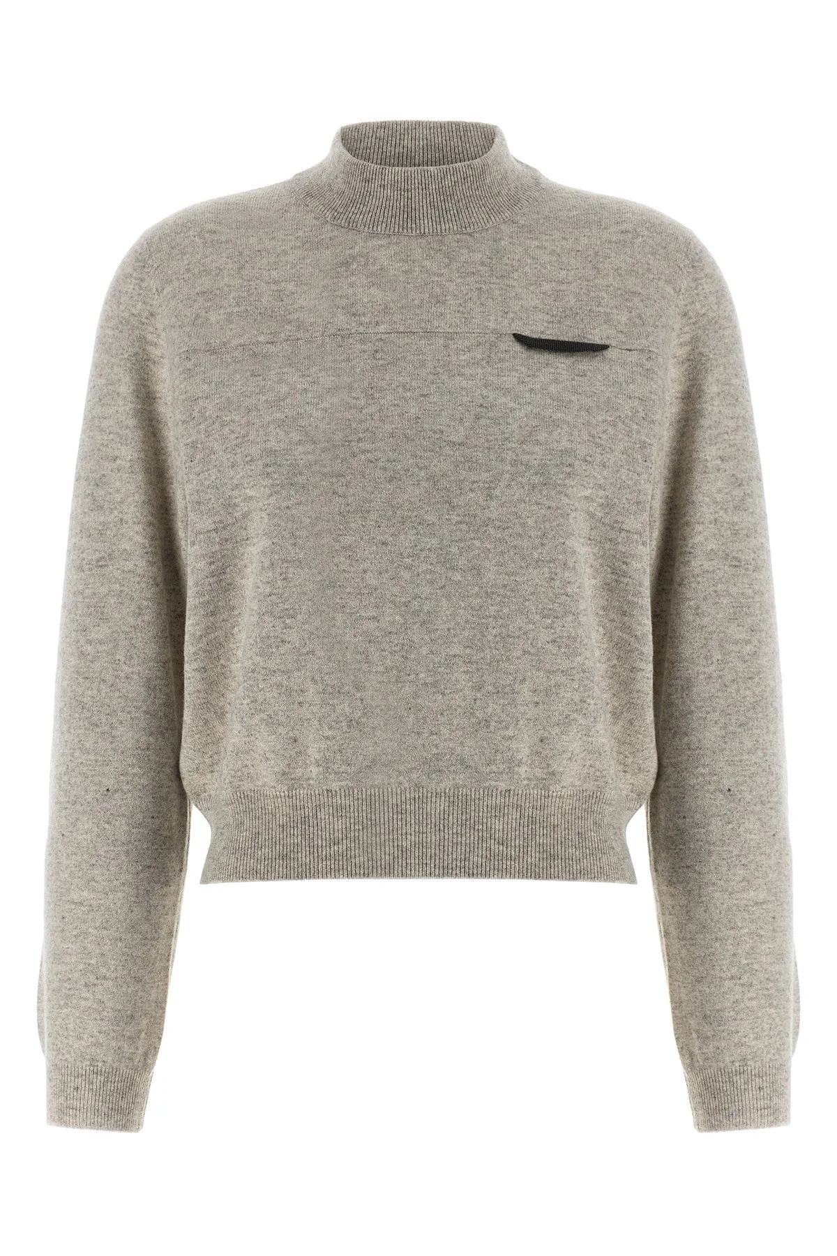 cod. M12212604C8920 Chashmere sweater with jewel detail, high neck, long cuffed sleeves. Color: Multicolor Size & Fit: True to size fit Composition: 100% WS Made in: Italy