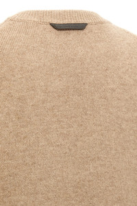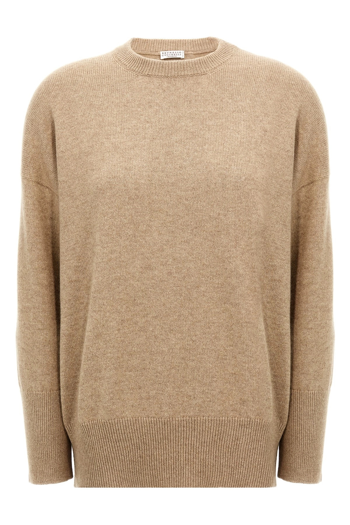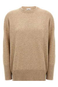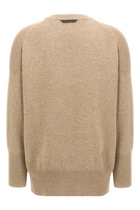 cod. M12707300C077 Cashmere crewneck sweater with Monile detail on the back, long sleeves with cuffs and dropped shoulders. Color: Beige Size & Fit: oversized fit Composition: 100% cashmere Made in: Italy