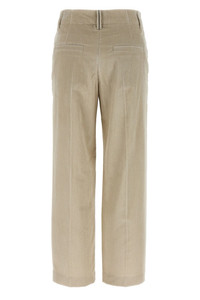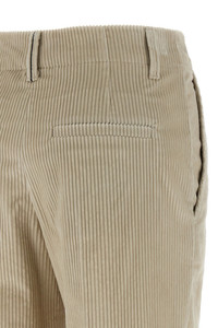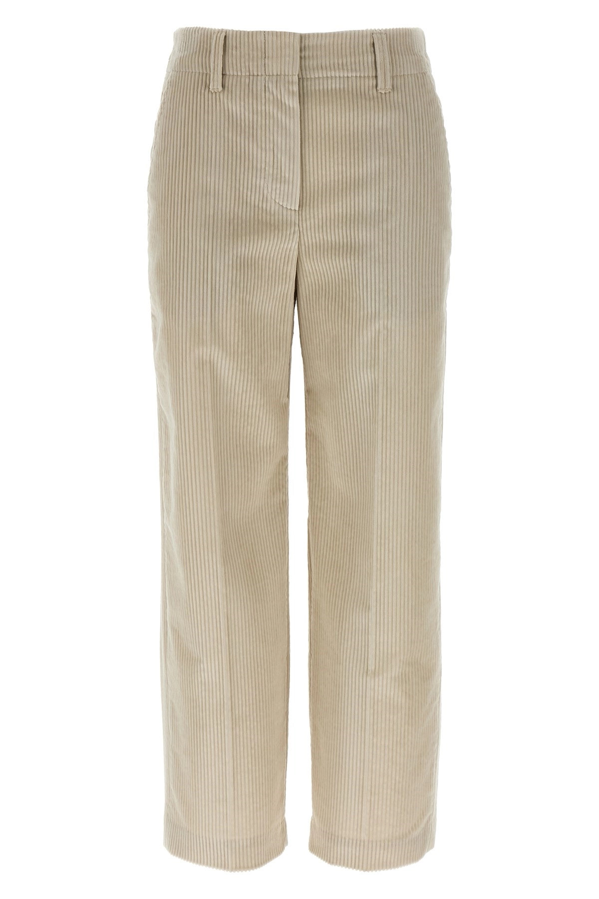 cod. MA180P9078C2430 Corduroy pants, crop model, straight leg, stretched pleat, zip hook and button closure on the front, pockets, back Monile detail. Color: Beige Size & Fit: true to size fit Composition: 100% cotton Made in: Italy