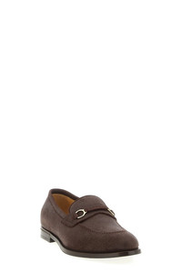 cod. MZUMNAU729C4230 Oiled suede loafers Penny Loafer model, front metal clamp detail, leather lining, leather sole with rubber heel and non-slip insulation under the toe. Color: Brown Size & Fit: EU MEN Composition: 100% calfskin leather (Bos Taurus) Made in: Italy