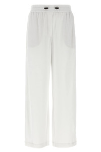 cod. MG927VD299C7220 Pique cotton joggers with adjustable drawstring elastic at the waist, pockets and wide leg. Color: White Size & Fit: true to size fit Composition: 93% cotton, 7% polyamide Made in: Italy