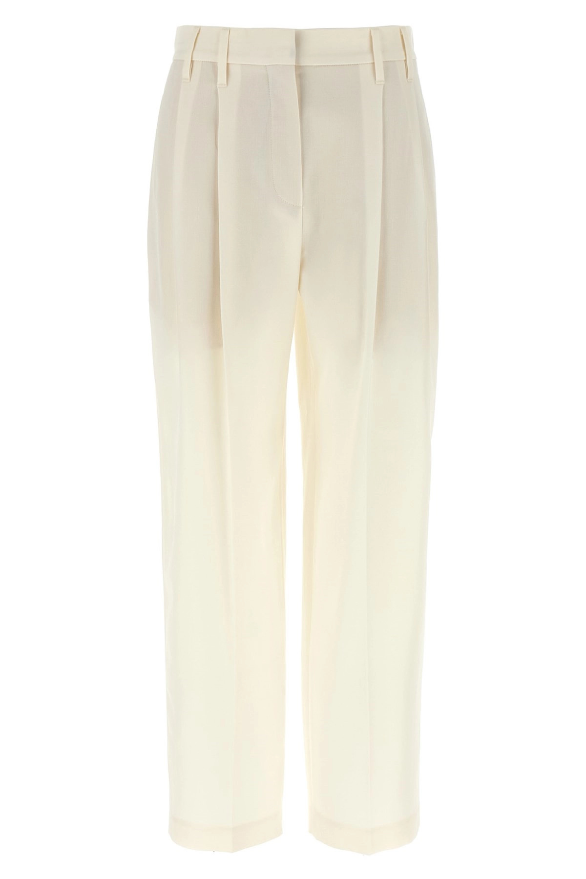 cod. MA033P9045C4357 Wool and cotton blend pants, pins, zip, hook and front button closure, pockets, ironed pleat, back Monile detail. Color: White Size & Fit: baggy fit Composition: 76% virgin wool, 24% cotton Made in: Italy