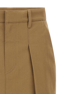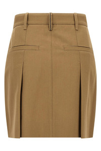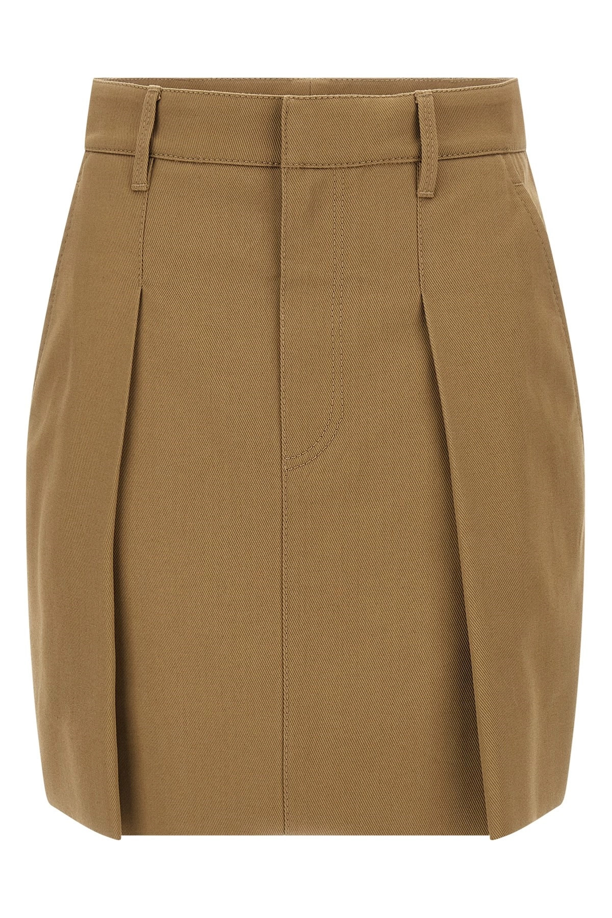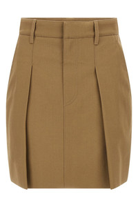 cod. MP141G3889C5785 Mini skirt in pleated cotton canvas, zip, hook and front button closure, pockets, back Monile detail. Color: Brown Size & Fit: true to size fit Composition: 100% cotton Made in: Italy