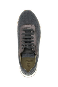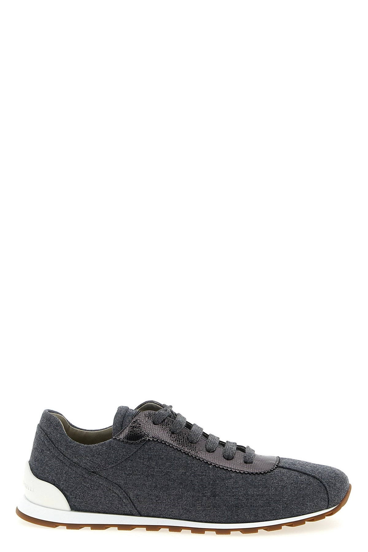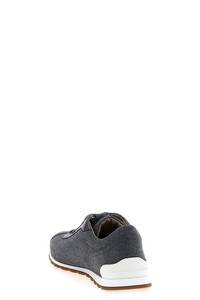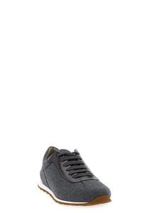 cod. MZ26G3031C003 'Runners' virgin wool flannel sneakers with lame calf leather insert, cashmere laces closure with Monile detail, removable insole, micro lightweight sole. Color: Gray Size & Fit: EU WOMEN Composition: 100% virgin wool Made in: Italy