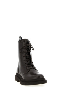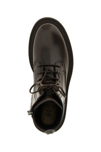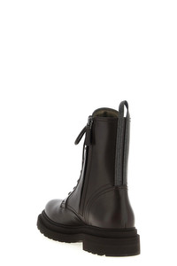 cod. MZOLG3036PC8279 Leather combat boots, front lace closure and side zip, 'Shiny Loop Detail' detail in Monile at the back, rubber sole. Color: Brown Size & Fit: EU WOMEN Composition: 100% leather Made in: Italy