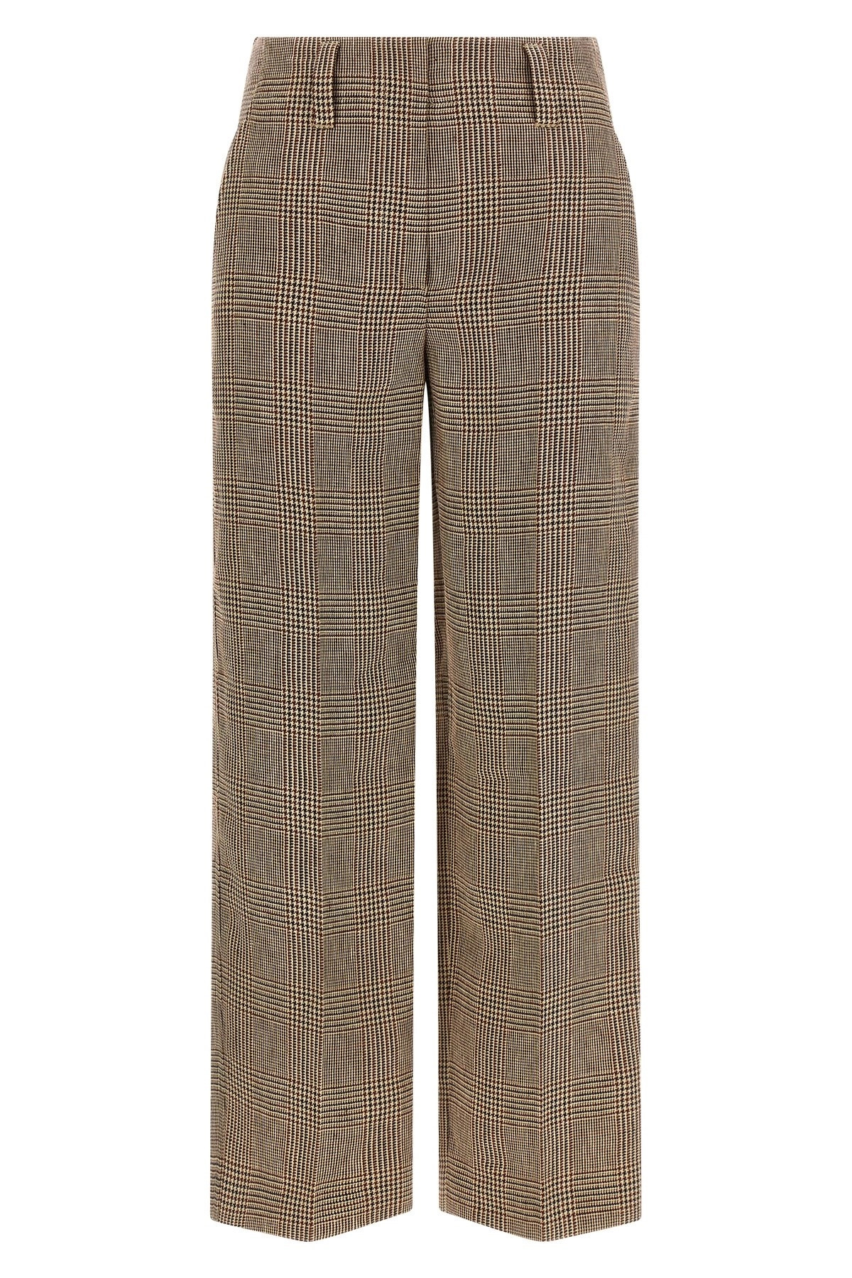 cod. ML122P9033C001 Prince of Wales patterned 'Square Cigarette' linen pants, silhouette next to the pelvis with slightly flared leg at the bottom, stretched pleat, hook and front button zip closure, front American pockets, welt pockets and back Monile detail. Color: Brown Size & Fit: true to size fit Composition: 100% linen Made in: Italy
