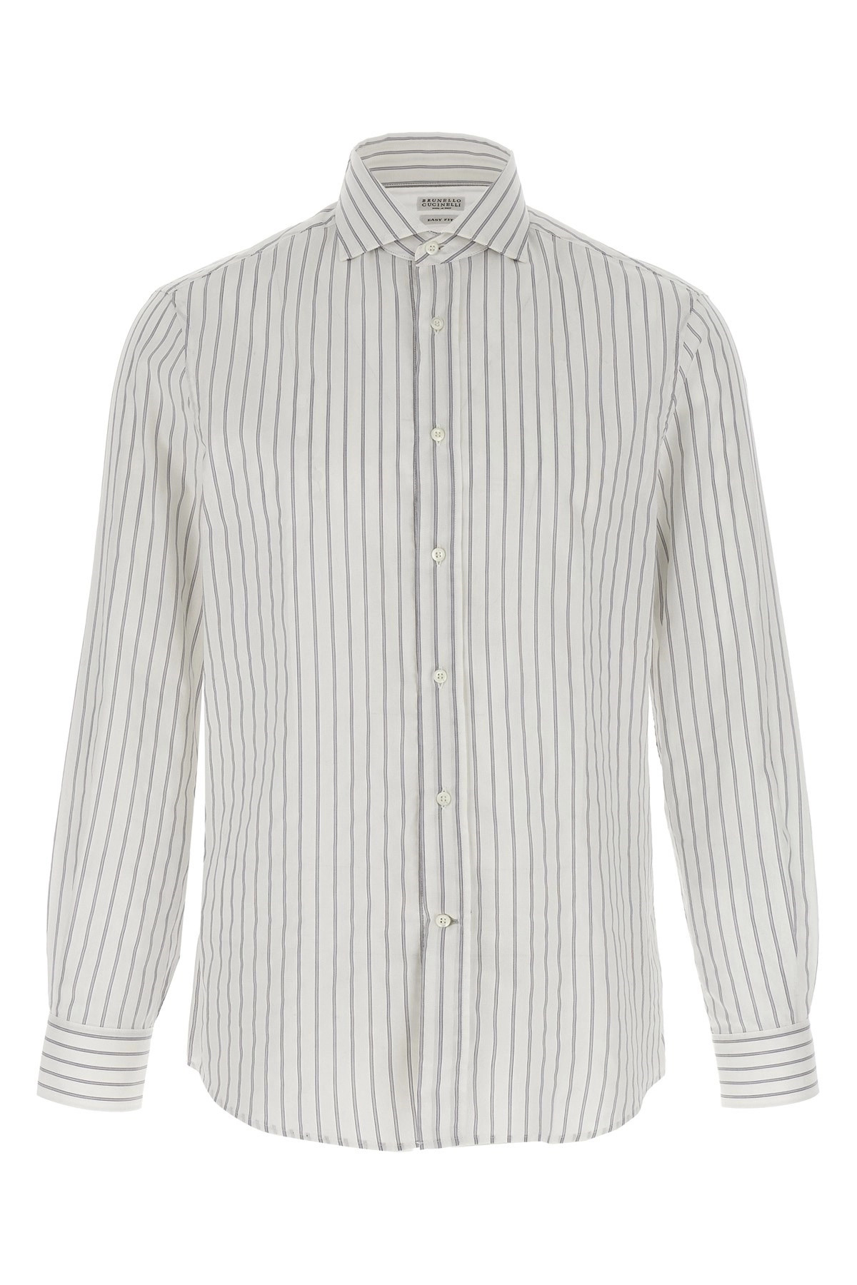 cod. MM6360627C016 Striped and operated cotton canvas shirt, French collar, front button closure, long cuffed sleeves. Color: White Size & Fit: Easy fit Composition: 100% cotton Made in: Italy