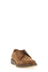 cod. MZUPEAT708C2692 Suede derby shoes with laces closure, leather welt with contrast stitching, lightweight rubber sole. Color: Brown Size & Fit: EU MEN Composition: 100% calfskin leather (Bos Taurus) Made in: Italy