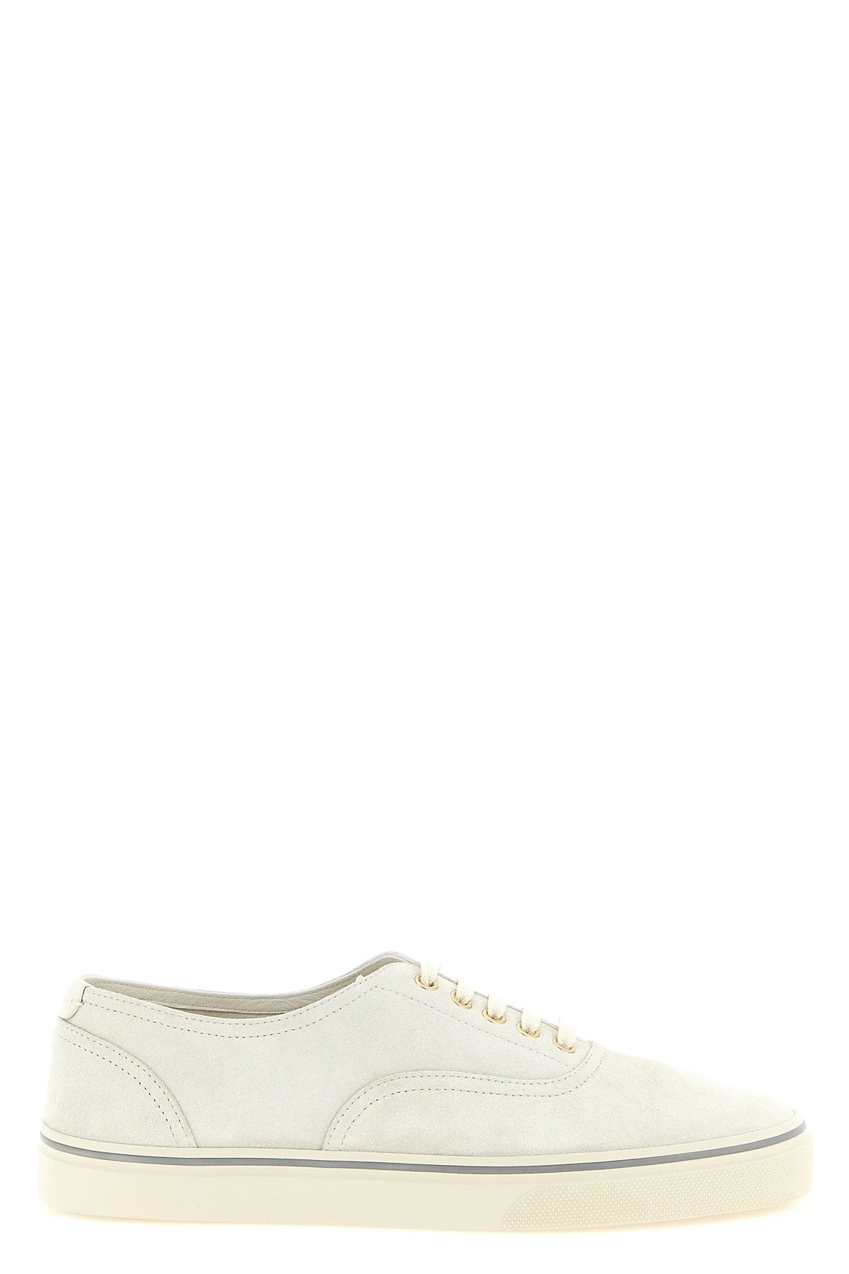 cod. MZUPIGZ334CXS08 Sneakers in inverted suede calfskin leather, contrasting leather patch with embossed logo on tongue and heel, lace-up closure, removable insole, vulcanized rubber sole. Color: Beige Size & Fit: EU MEN Composition: 100% calfskin leather (Bos Taurus) Made in: Italy