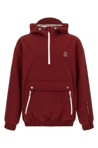 cod. MM134KG13C411 Water-repellent membrane nylon jacket, fleece lining, fleece design, front logo embroidery, adjustable hood, half zip, kangaroo pocket, long sleeves with elastic cuffs, windproof gaiter and dropped shoulder, elastic hem, zip with mesh insert on the sides. Color: Bordeaux Size & Fit: Comfort fit Made in: Italy