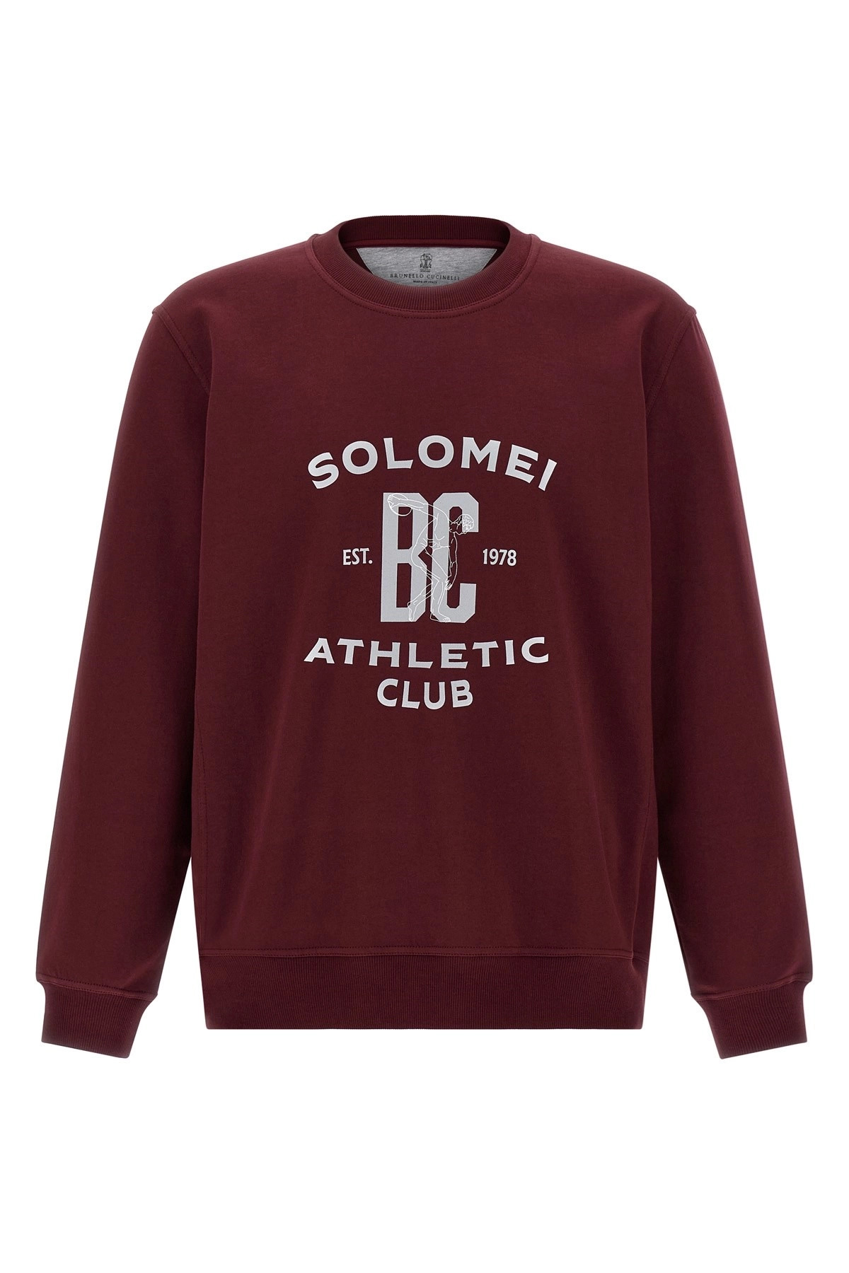 cod. MW8633380GC3985 Light techno cotton sweatshirt, front print, crew neck, long cuffed sleeves. Color: Bordeaux Size & Fit: true to size fit Composition: 95% cotton 5% polyamide Made in: Italy