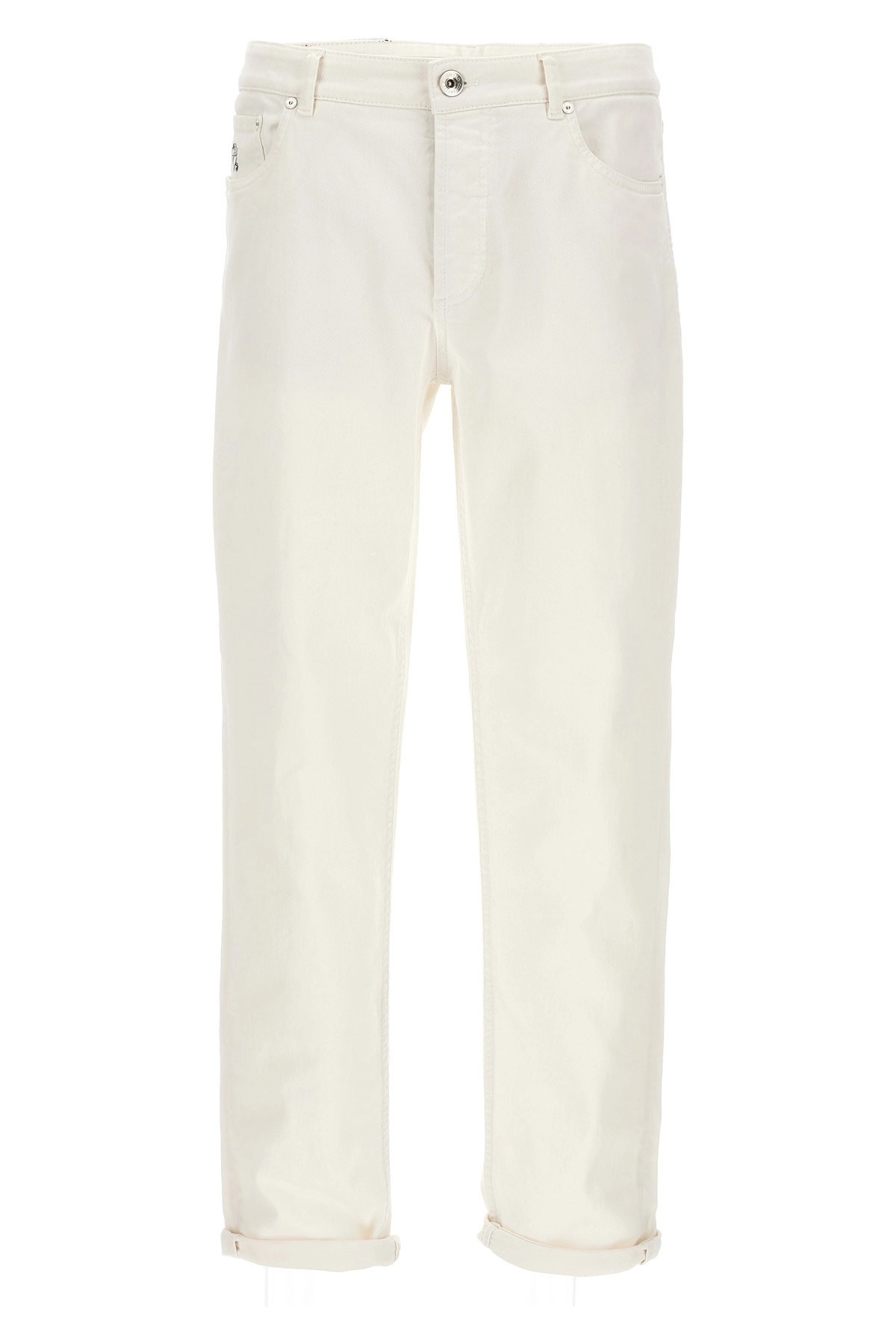 cod. M277PD3210C7210 Denim jeans, traditional fit with turn-up, zip and button closure. Color: White Size & Fit: True to size fit Composition: 99% cotton, 1% elastane