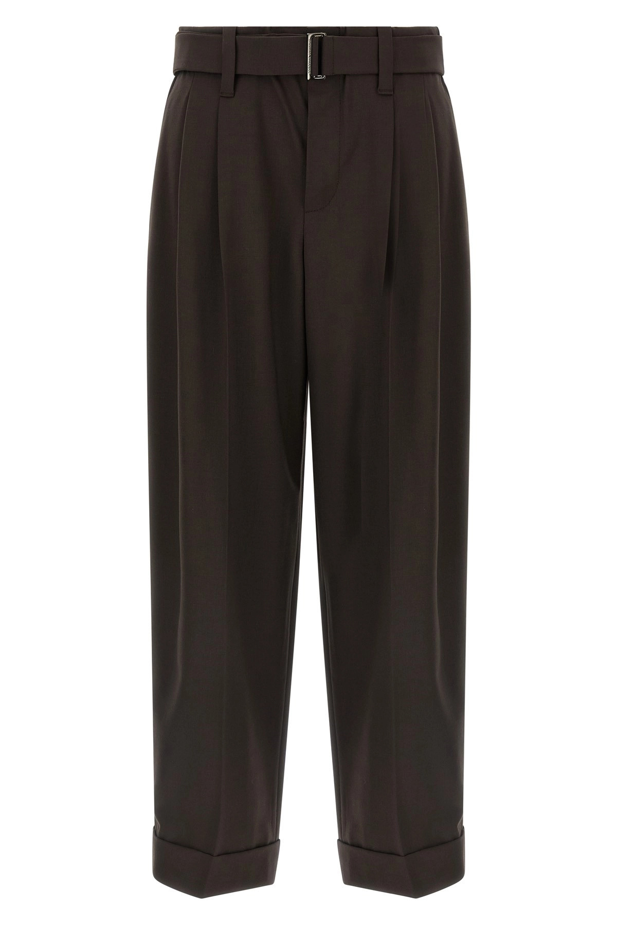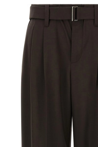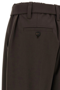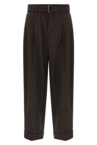 cod. MPW07P8995C019 Baggy wool pants with front stretched pleat, adjustable waist belt with logo metal buckle, stitched turn-up on the hem, pockets. Color: Brown Size & Fit: Comfort fit Composition: 75% wv, 23% pa, 2% ea Made in: Italy