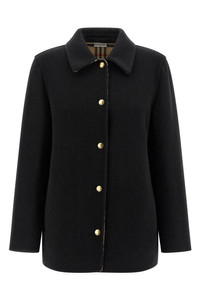 cod. 8115289BLACKSANDIPCHECK Double face wool twill jacket with Burberry Check lining, shirt collar, front snap button closure, pockets, long sleeves. Color: Black Size & Fit: comfort fit - UK sizing Composition: 100% wool Made in: Italy