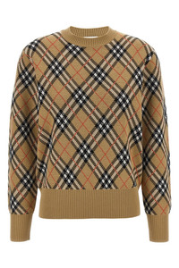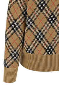 cod. 8110514SANDIPCHECK Burberry Check print wool sweater with crew neck and long cuffed sleeves. Color: Beige Size & Fit: true to size fit Composition: 95% wool 5% polyester Made in: Italy