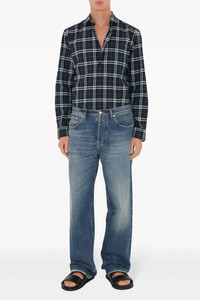 Button-down Collar Check Cotton Flannel Shirt