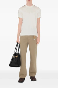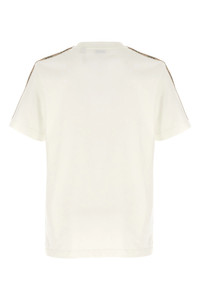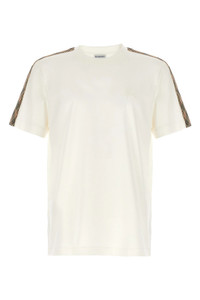 cod. 8106246CHALK Cotton jersey T-shirt with tone-on-tone Equestrian Knight Design embroidery on the front, crew neck, short sleeves with Burberry Check ribbons. Color: White Size & Fit: Slim fit Composition: 100% cotton Made in: Vietnam