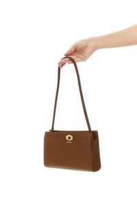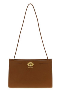 cod. 8111424HAZEL 'Cotswolds' grained calf leather clutch bag with Burberry Check woven cotton blend lining, front embossed logo, metal closure with engraved Check pattern and D-shaped ring spin, shoulder strap.. Color: Brown Size & Fit: W 22 x H 14.5 x D 6 cm - Strap 27 cm Composition: 100% calfskin leather (Bos Taurus) Made in: Italy