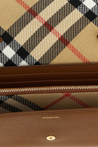 cod. 8112318HAZEL 'Cotswolds' grained calf leather wallet on chain, woven cotton blend lining with Burberry Check, flap closure with snap button and metal tag with Check pattern and front engraved logo, removable shoulder strap. Color: Beige Size & Fit: W 20.5 x H 12.5 x D 3.7 cm Composition: 100% calfskin leather (Bos Taurus) Made in: Moldova