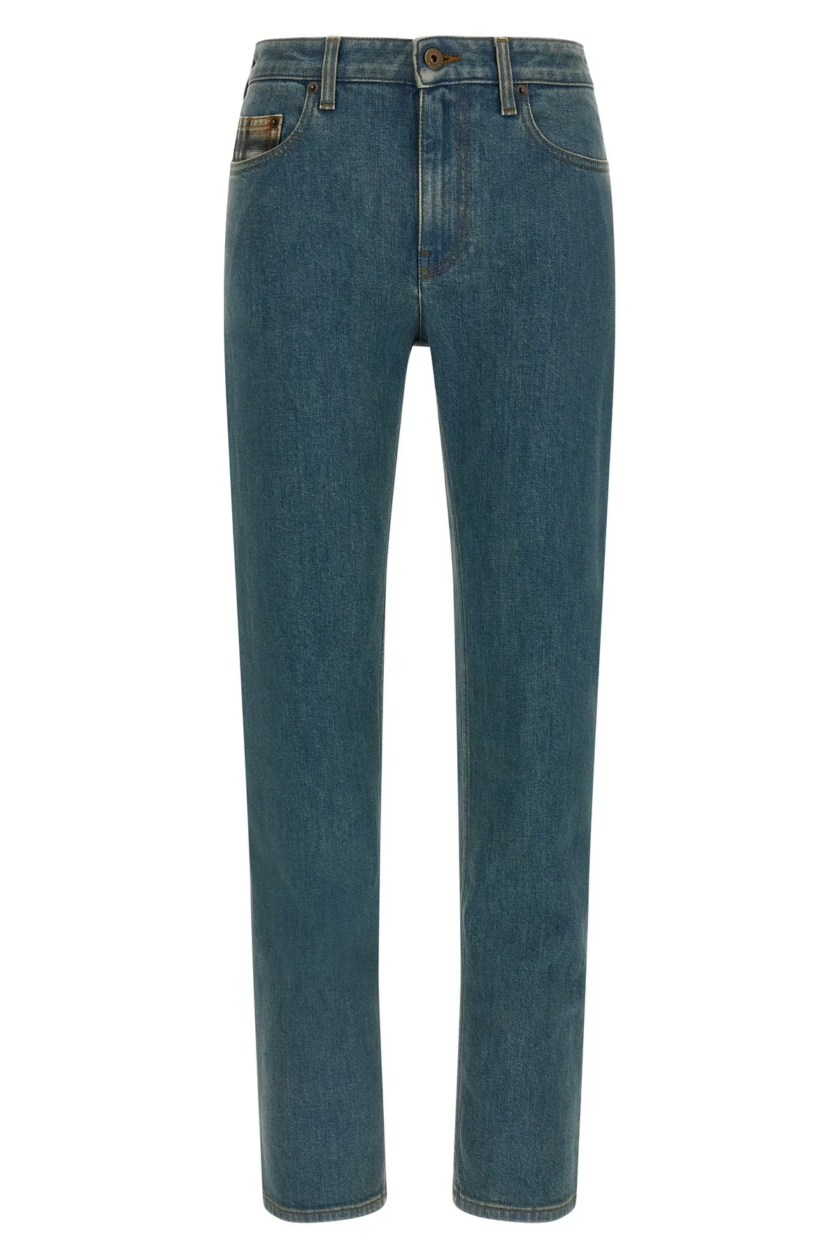 cod. 8118499MIDBLUE 'Dalia' heavy stretch denim jeans with medium wash, contrast stitching, Burberry Check details in the pocket and inside the waist, mid waist, straight leg, front zip and button closure, five pockets, back suede logo tag. Color: Blue Size & Fit: true to size fit Composition: 98% cotton, 2% elastane Made in: Italy