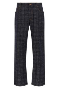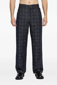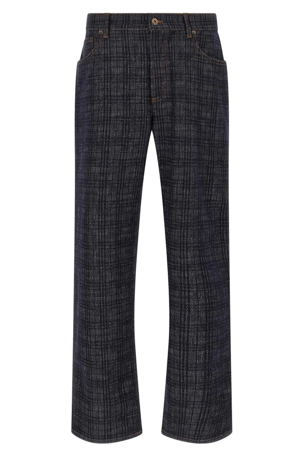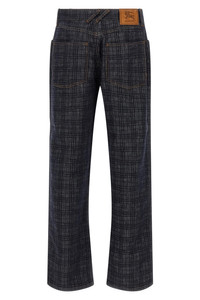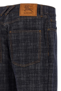 cod. 8110647INDIGOIPCHECK Dexter' cotton denim jeans with indigo wash and Burberry Check with jacquard pattern, wide and straight leg, front button closure, five pockets, back suede logo tag. Color: Blue Size & Fit: Comfort fit Composition: 100% cotton Made in: Italy