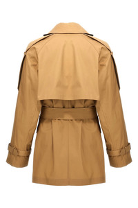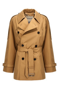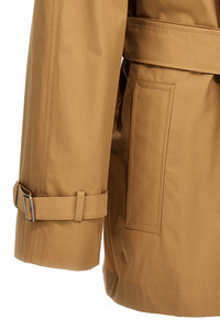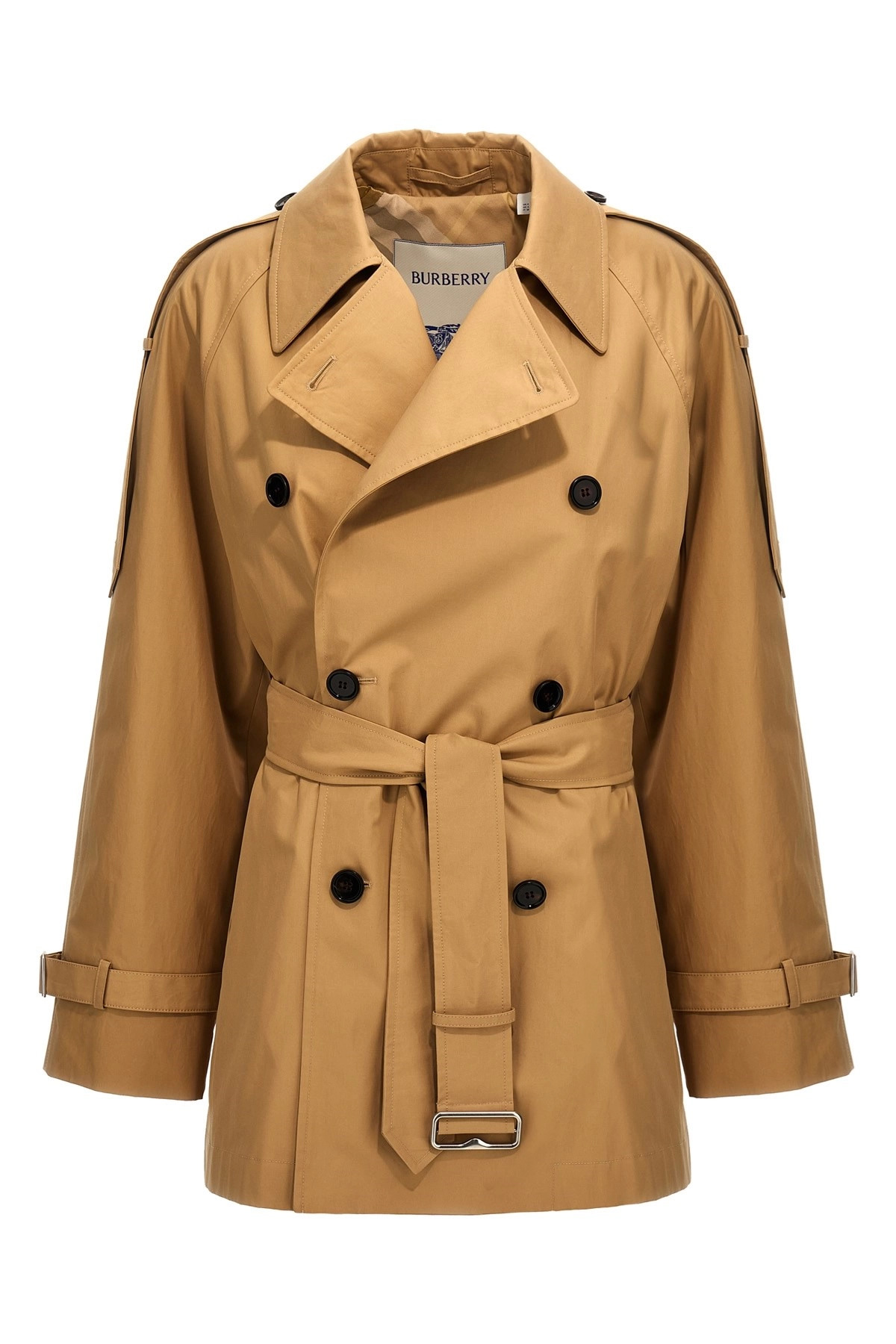 cod. 8089783FLAX Double-breasted short cotton trench coat with check lining and belt at the waist, button closure, side pockets, long sleeves with adjustable straps Color: Beige Size & Fit: True to size fit UK sizing Composition: 100% cotton Made in: Albania