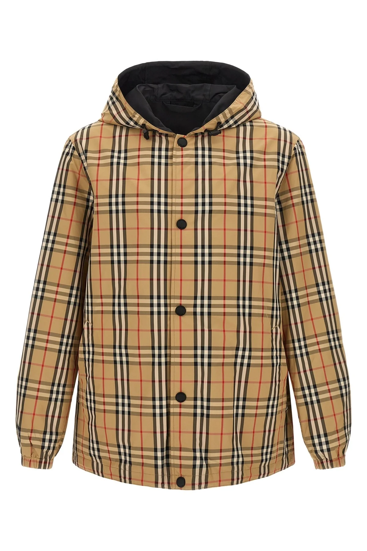 cod. 8096448ARCHIVEBEIGEIPCHK Solid color reversible 'Rainford' nylon jacket with tone-on-tone silicone 'Equestrian Knight Design' patch and Burberry Check, adjustable hood, front snap button closure, pockets, long sleeves with elastic cuffs, drawstring at the hem. Color: Multicolor Size & Fit: true to size fit Composition: 100% polyamide Made in: Thailand PROMO CODE NOT APPLICABLE