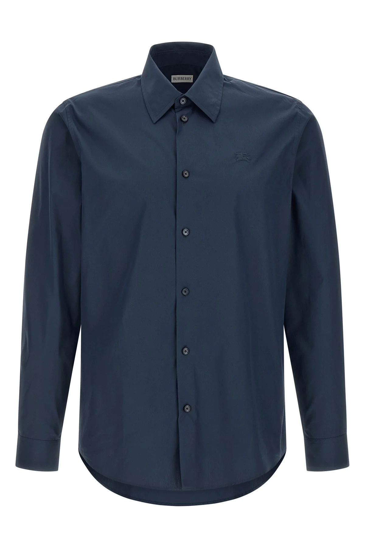cod. 8122006DARKGRAPHITEBLUE 'Sam' cotton poplin shirt with Burberry Check inner details, tone-on-tone 'Equestrian Knight Design' logo embroidery and front button closure, long cuffed sleeves and rounded hem. Color: Blue Size & Fit: true to size fit Composition: 100% cotton Made in: Italy