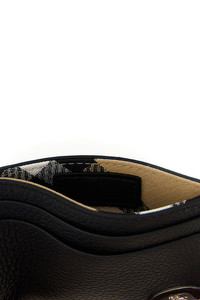 cod. 8113101BLACK 'Sandon Cotswolds' hammered leather card holder, Burberry Check lining, enamelled Knight Stamp tag. Color: Black Size & Fit: W 10 x H 8.5 cm Composition: 100% calfskin leather (Bos Taurus) Made in: Moldova
