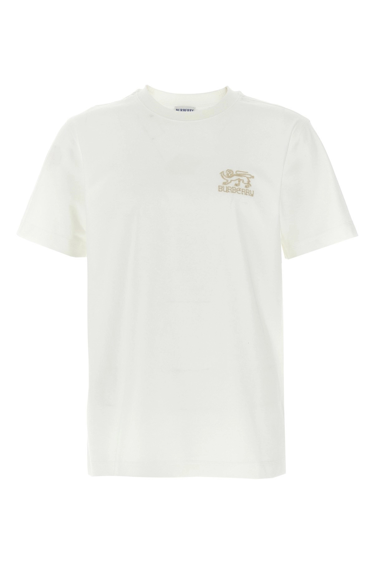 cod. 8101901CHALK 'SP25' cotton T-shirt with front logo embroidery, crew neck, short sleeves. SUSTAINABLE: This product is made of organic cotton. Color: White Size & Fit: true to size fit Composition: 100% cotton Made in: Portugal