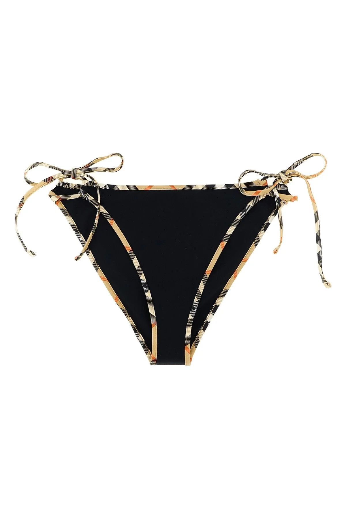 cod. 8118812BLACK 'Starla' stretch nylon bikini bottoms with Burberry Check details, side laces, classic cover. Color: Black Size & Fit: true to size fit Composition: 73% polyamide, 27% elastane Made in: Portugal