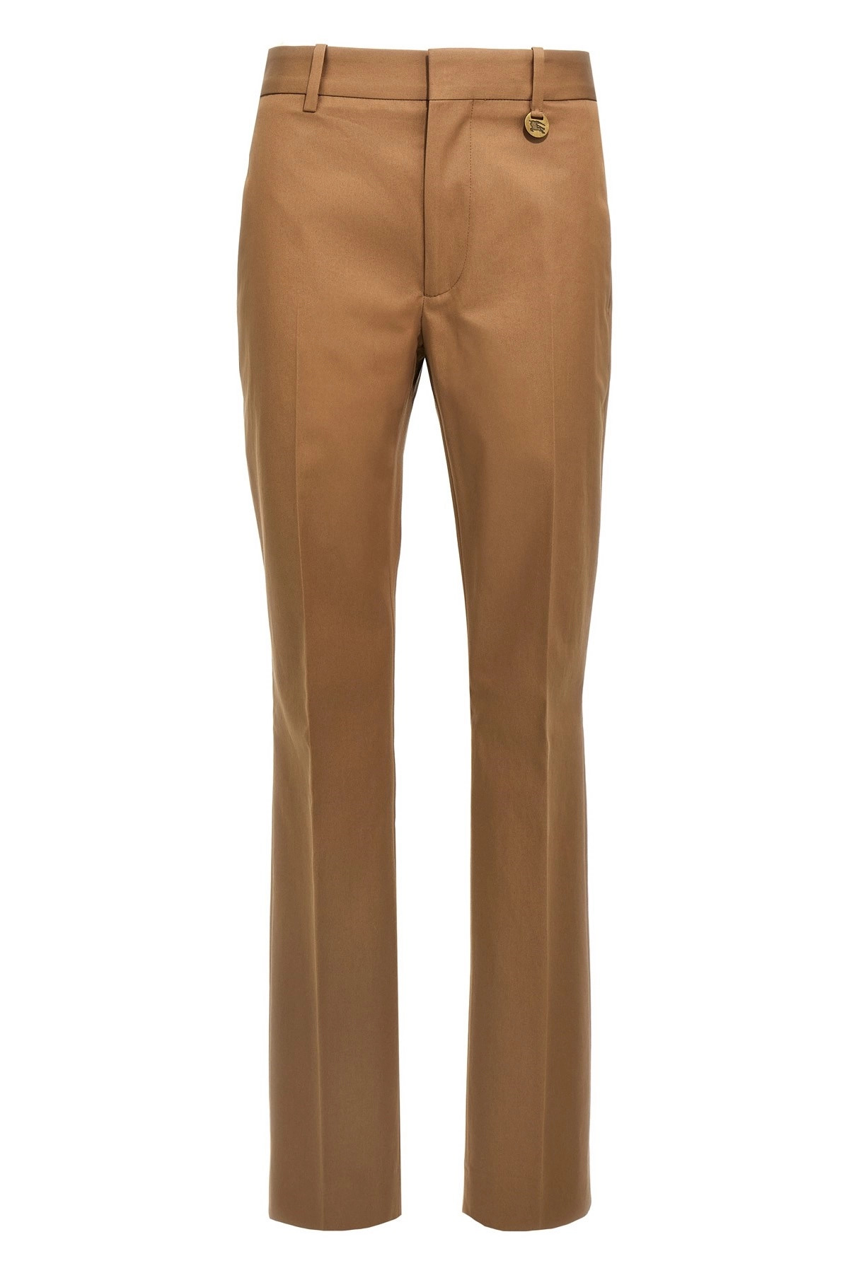 cod. 8106370WARMCOCOA Cotton trousers, straight leg, slightly slim fit, front stretched pleat, metal logo detail, front zip and hook closure, pockets. Color: Beige Size & Fit: True to size fit Composition: 100% cotton Made in: Italy