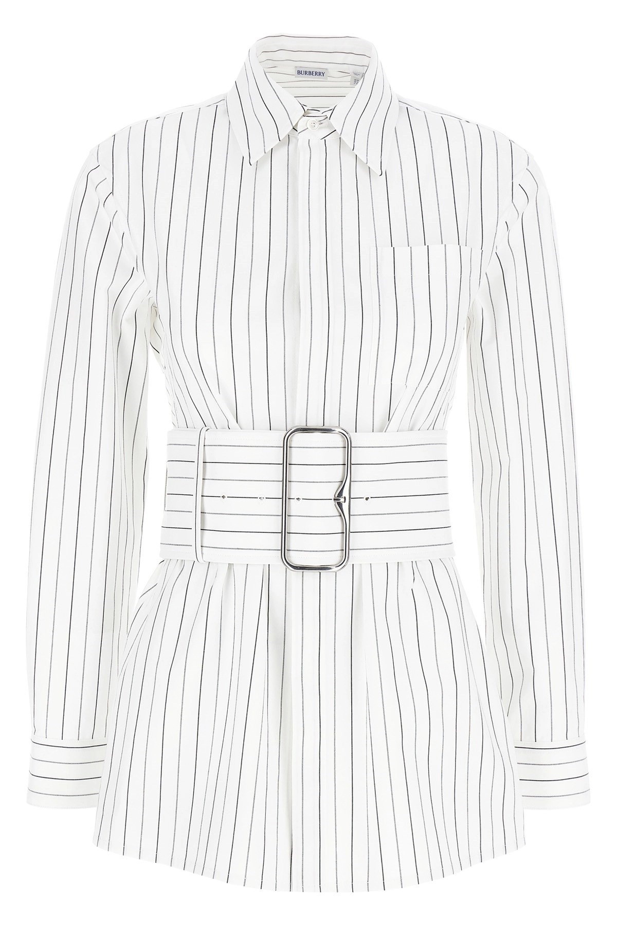 cod. 8103514STRINGCOAL Striped cotton shirt with button closure, long cuffed sleeves, breast pocket, back pin tucks, removable matching belt. Color: White Size & Fit: true to size fit UK sizing Composition: 100% cotton Made in: Italy
